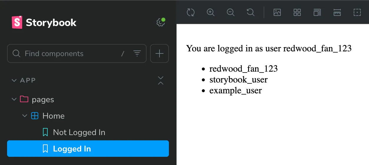 4. Save it, and go back to our Storybook site. We should see a new “Logged In” story: