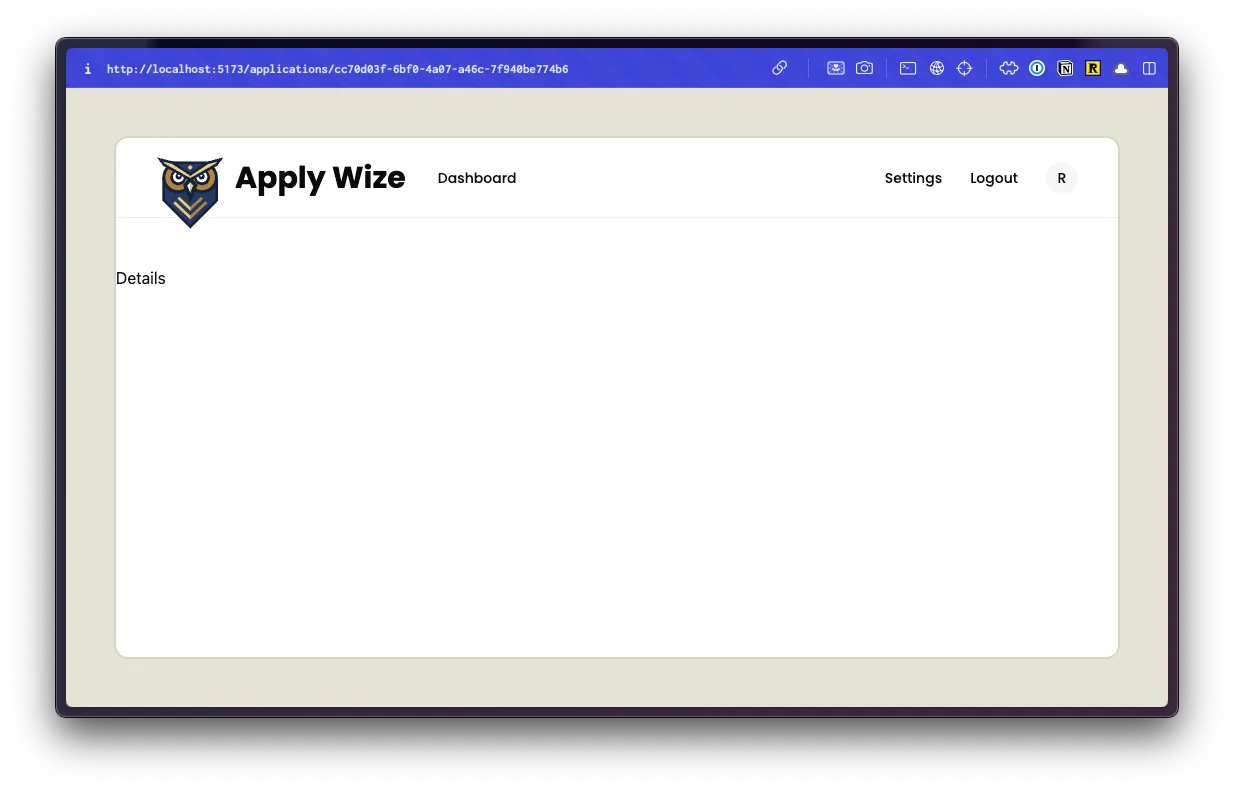 The URL for your page should look something like this: http://localhost:5173/applications/cc70d03f-6bf0-4a07-a46c-7f940be774b6