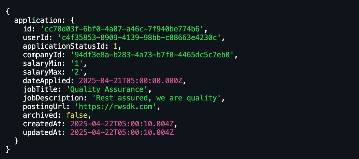• On line 122 - Our database call is similar to the createApplication function, but instead of create, we're using update.